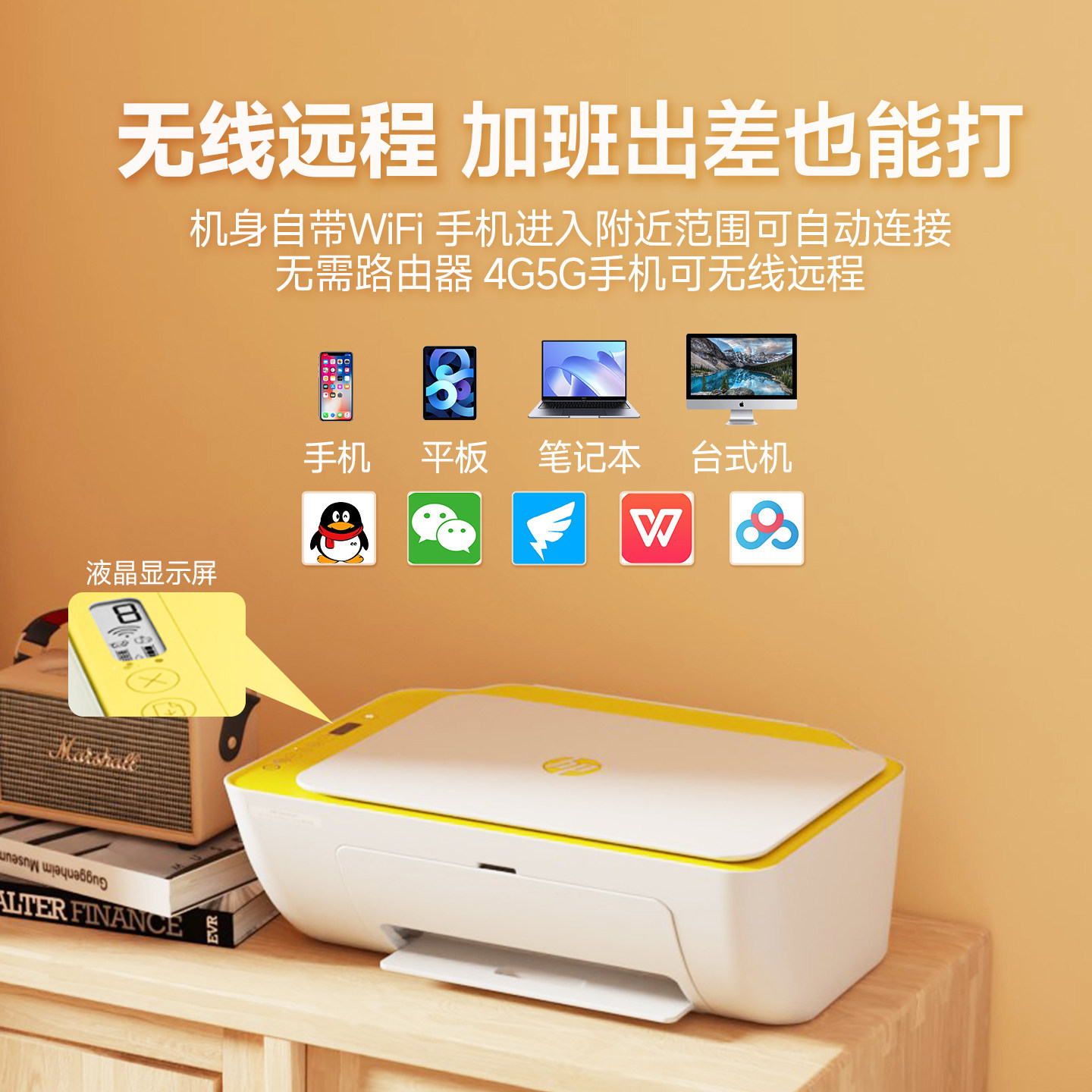 惠普4976彩色打印机家用小型复印扫描一体机学生作业可连接手机无线远程家庭A4喷墨照片DJ2388桌面式办公专用