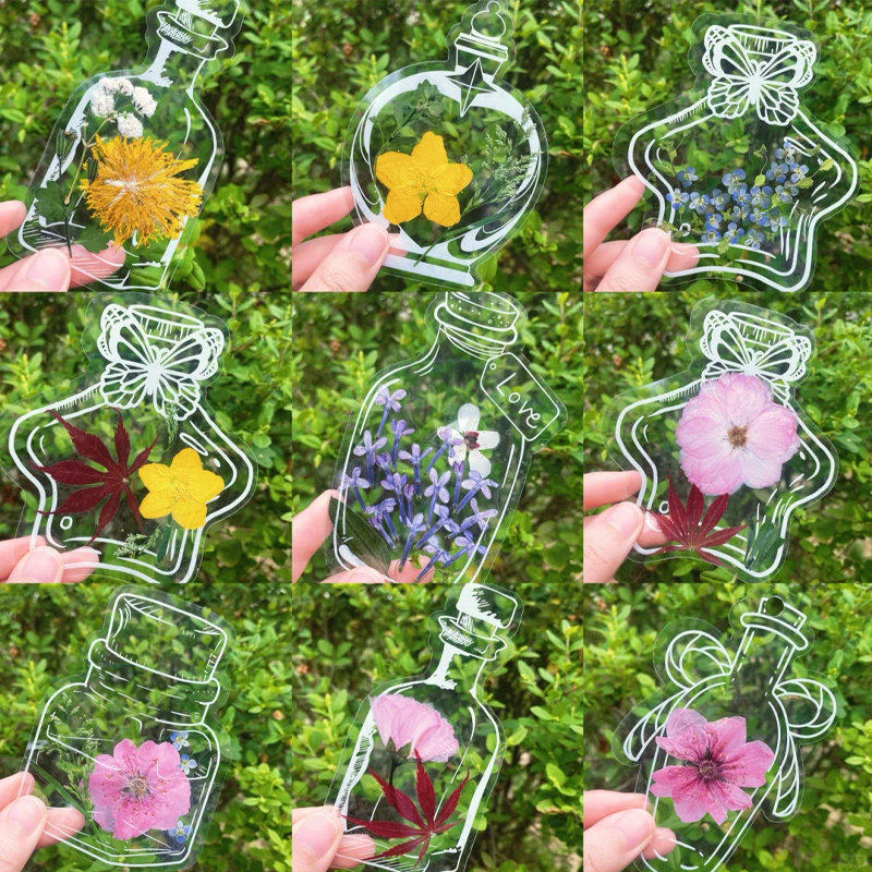 干花透明书签diy材料包压花塑封膜瓶子自制手工植物押花书签标本