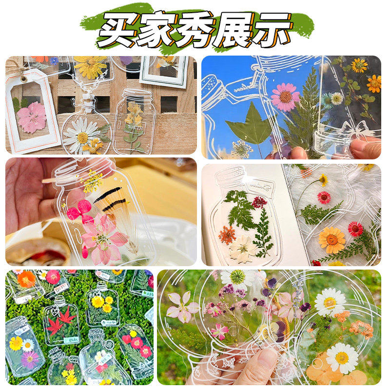 DIY干花植物标本透明书签塑封袋收集手工自制瓶子里的童年春天