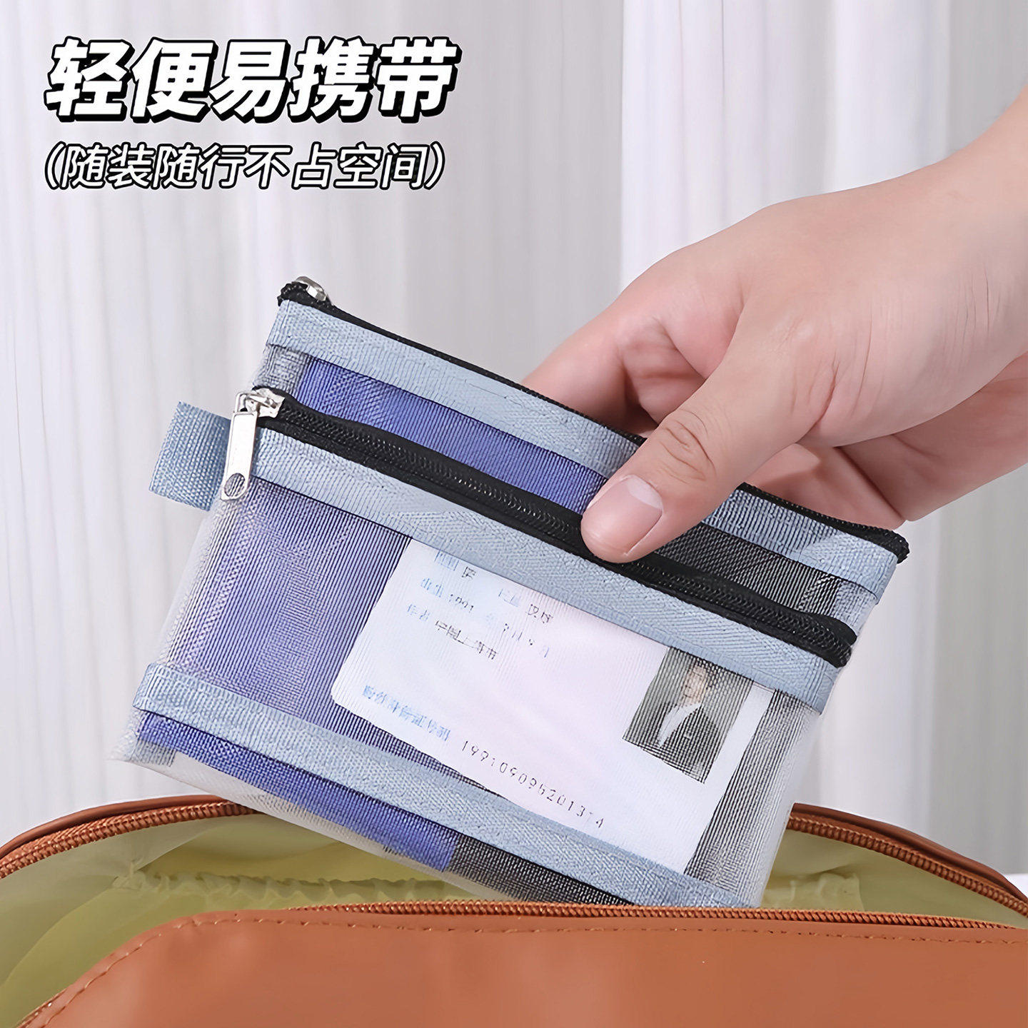 透明尼龙网格卡片收纳小包拉链袋收纳硬币零钱身份证银行卡收纳袋