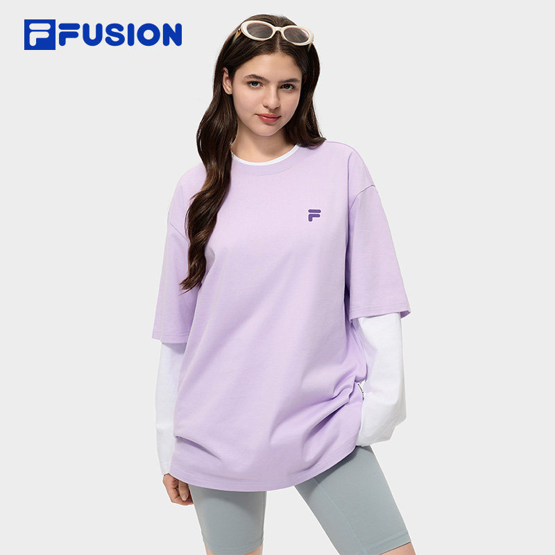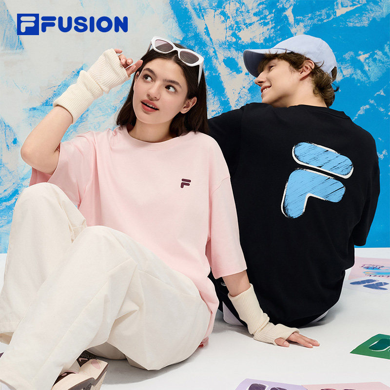 章昊同款FILA FUSION斐乐潮牌情侣款短袖2026春新年款宽松红色T恤