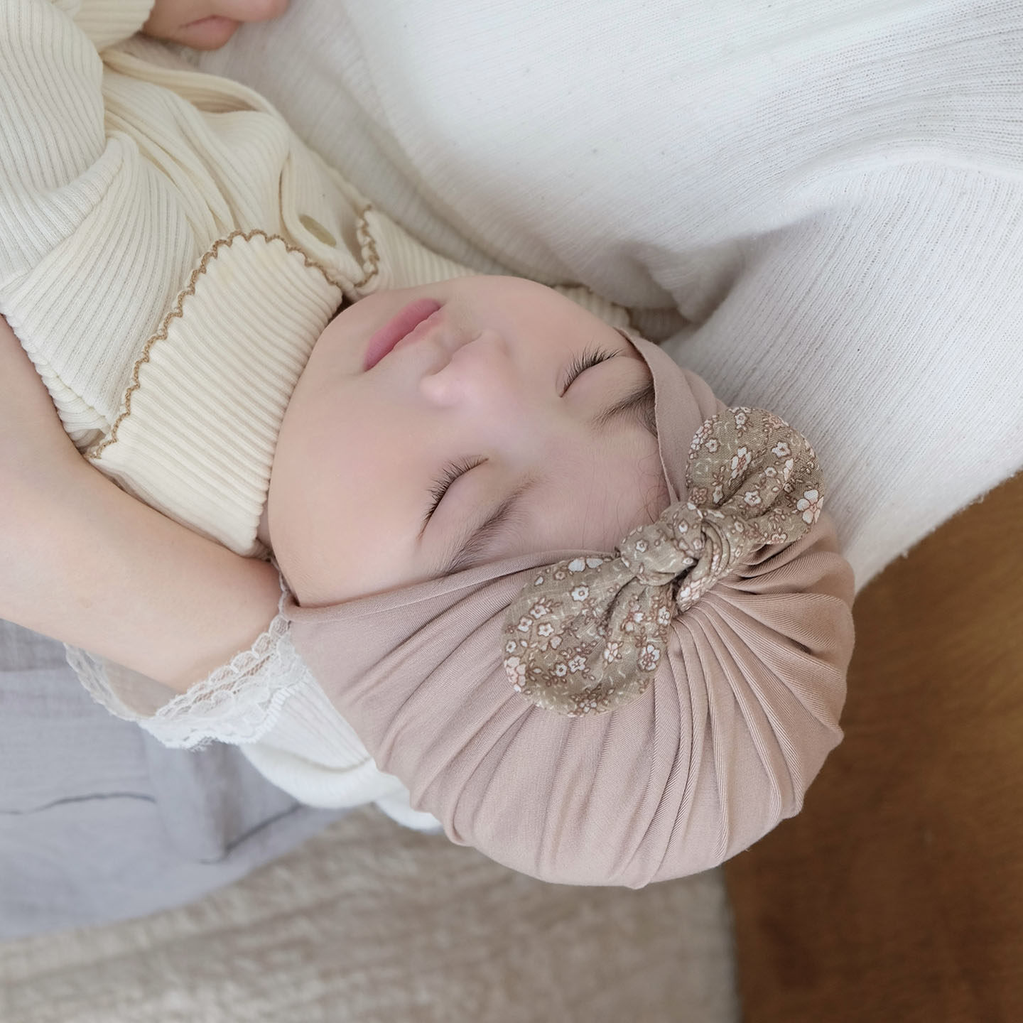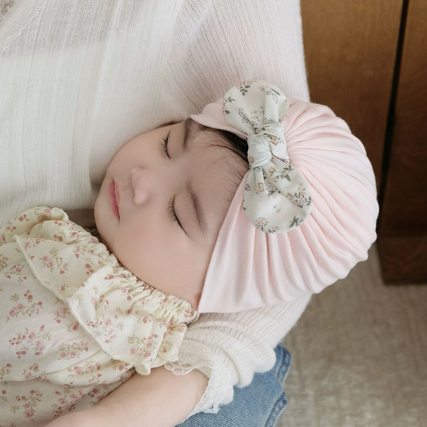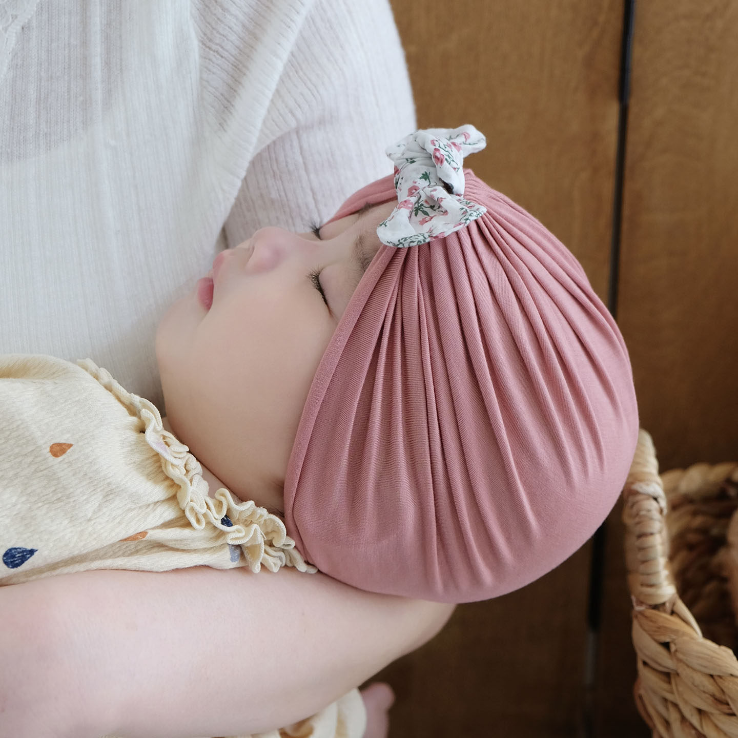 婴儿帽子春秋莫代尔可爱碎花蝴蝶结小月龄女宝宝初生新生儿胎帽冬