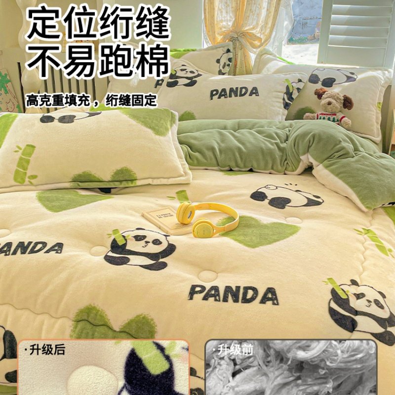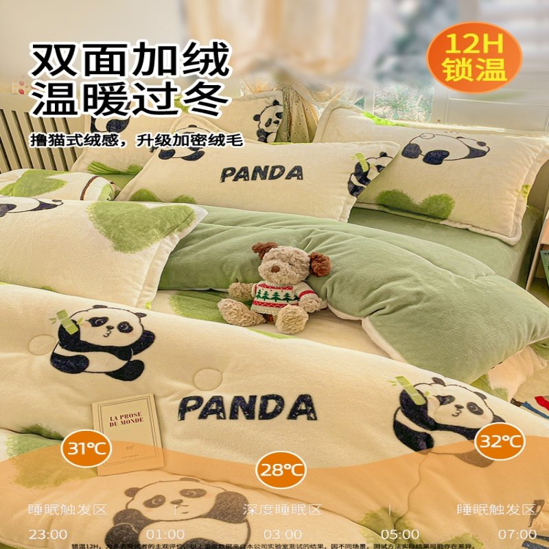 牛奶绒秋冬暖被双面绒软被珊瑚绒被褥免被罩床品被芯被子双人熊猫