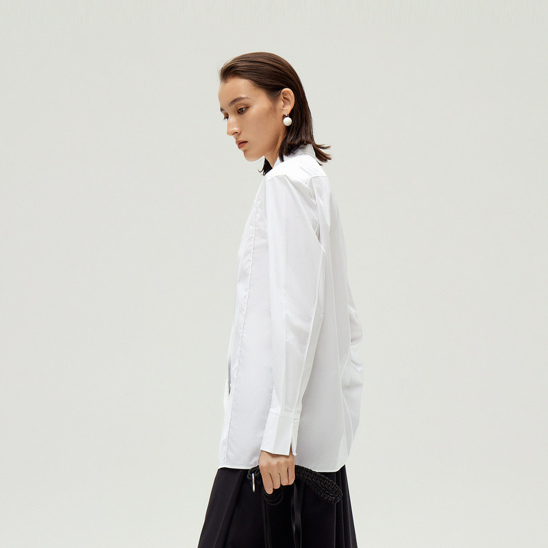 LESS棉质长袖衬衫女简约双层衣领纯色休闲衬衣上衣2O1211620
