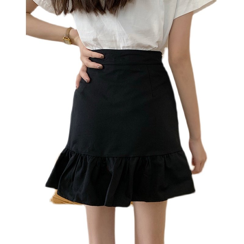 大码鱼尾裙半身裙女春夏季皱褶荷叶边半裙胖mm高腰a字短裙包臀裙