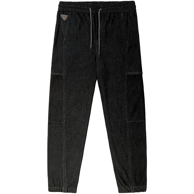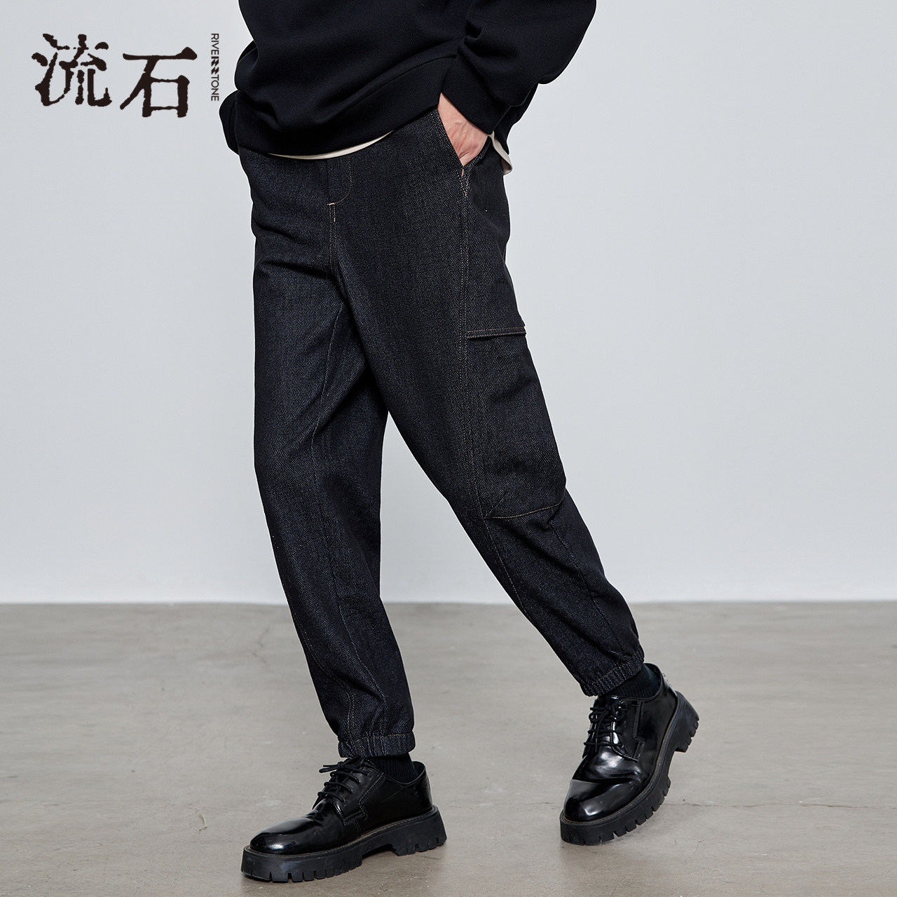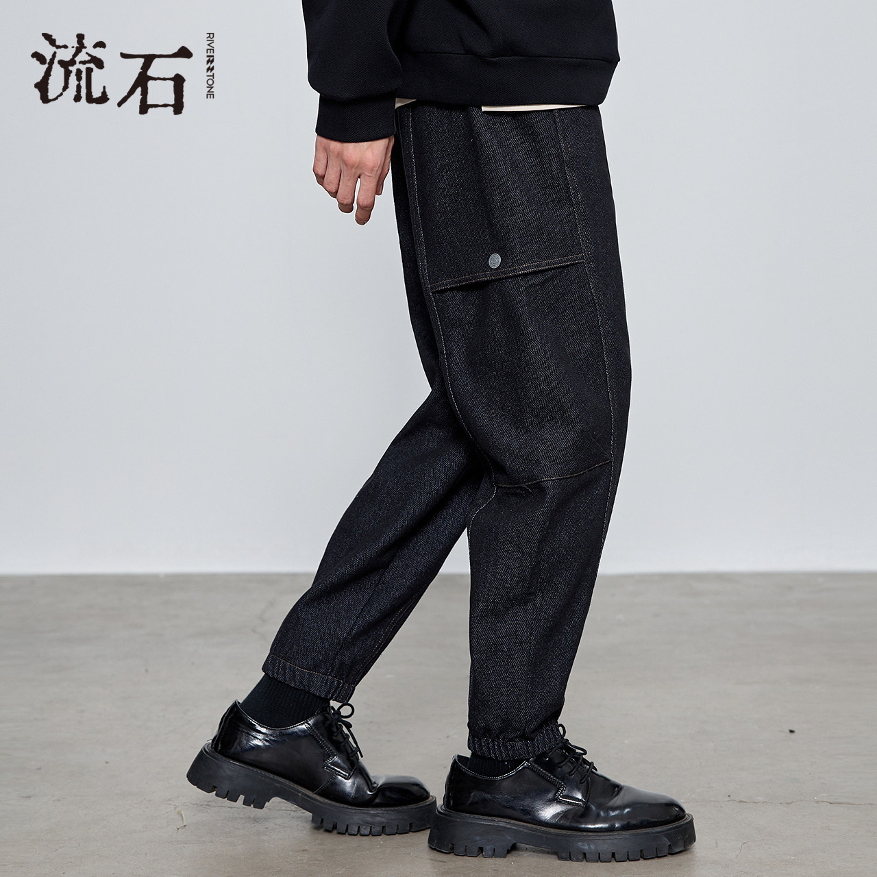 流石男装复古牛仔工装九分裤2025年冬季新款加厚抓绒拼接束脚裤男