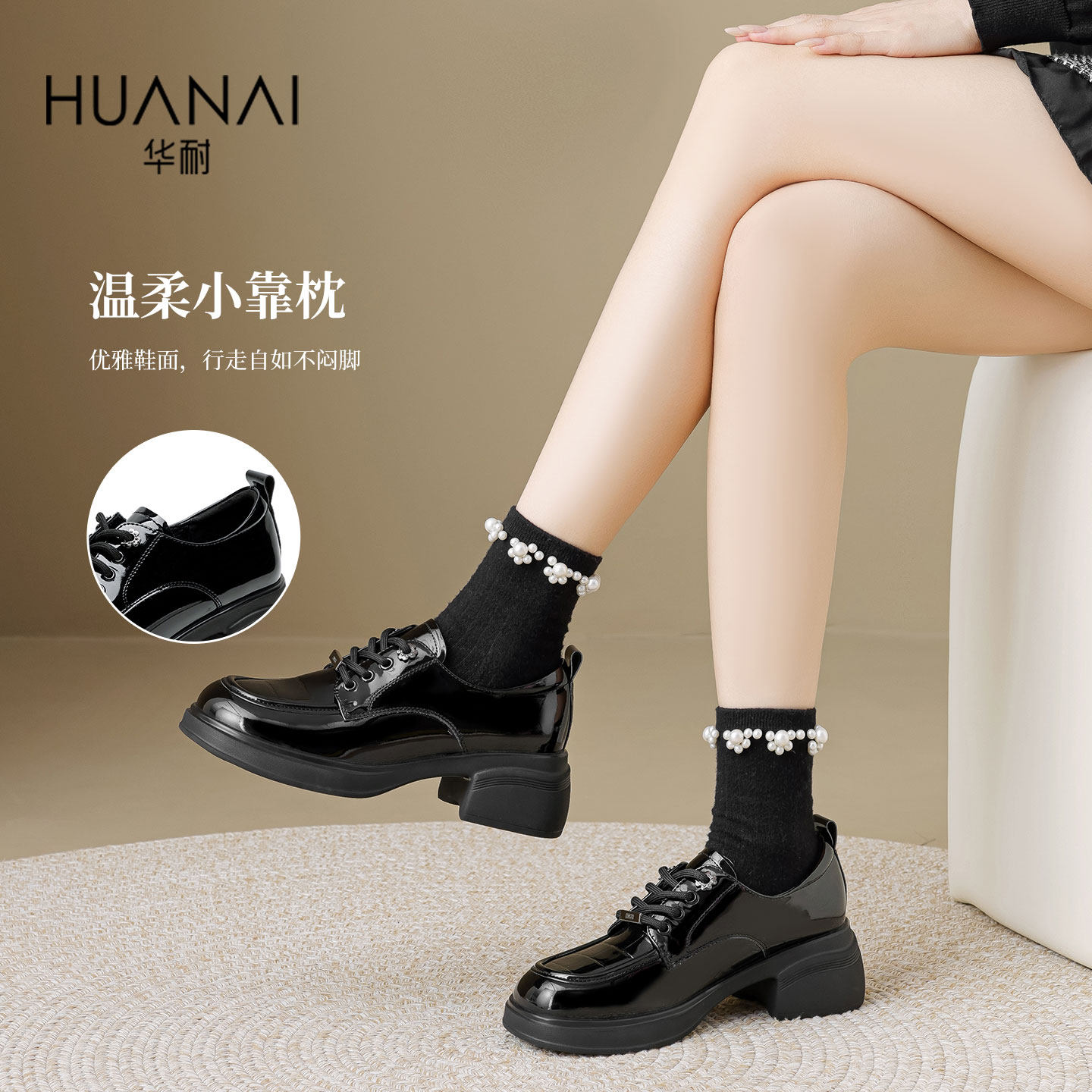 华耐乐福鞋女2025秋季新款英伦风JK制服小皮鞋百搭不累脚粗跟单鞋