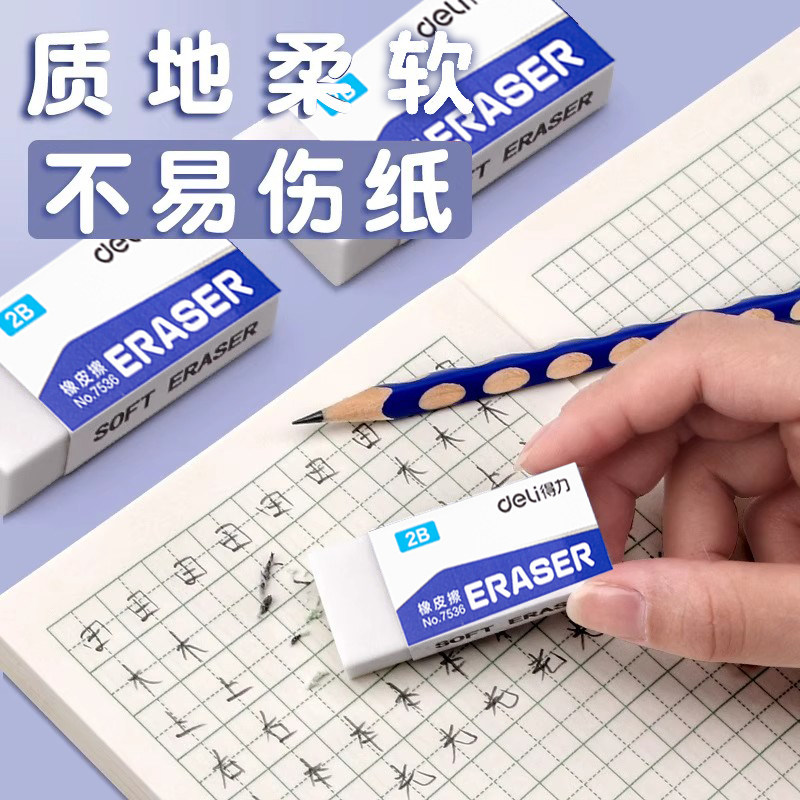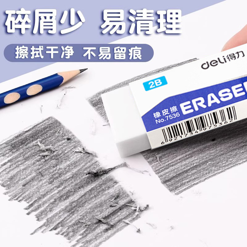 得力2B考试专用橡皮擦小学生省力干净不易留痕小巧便携带铅笔答题卡绘图考研橡皮学生专业考级4B素描橡笔擦