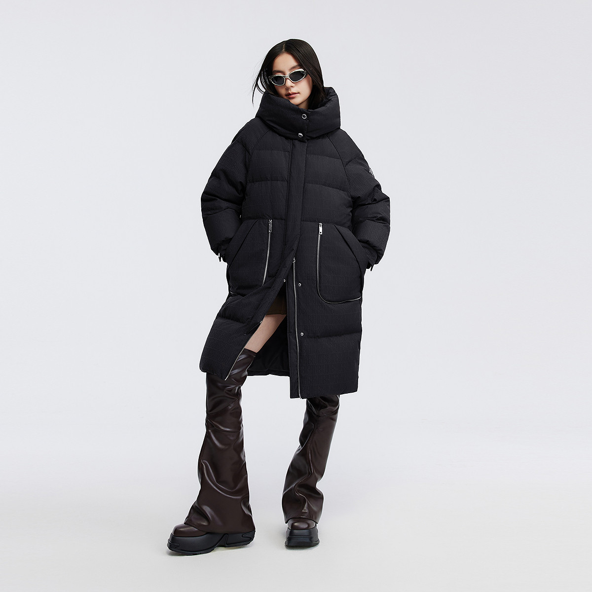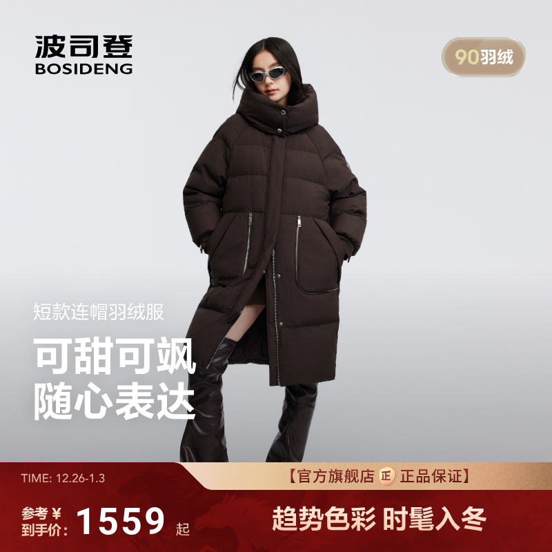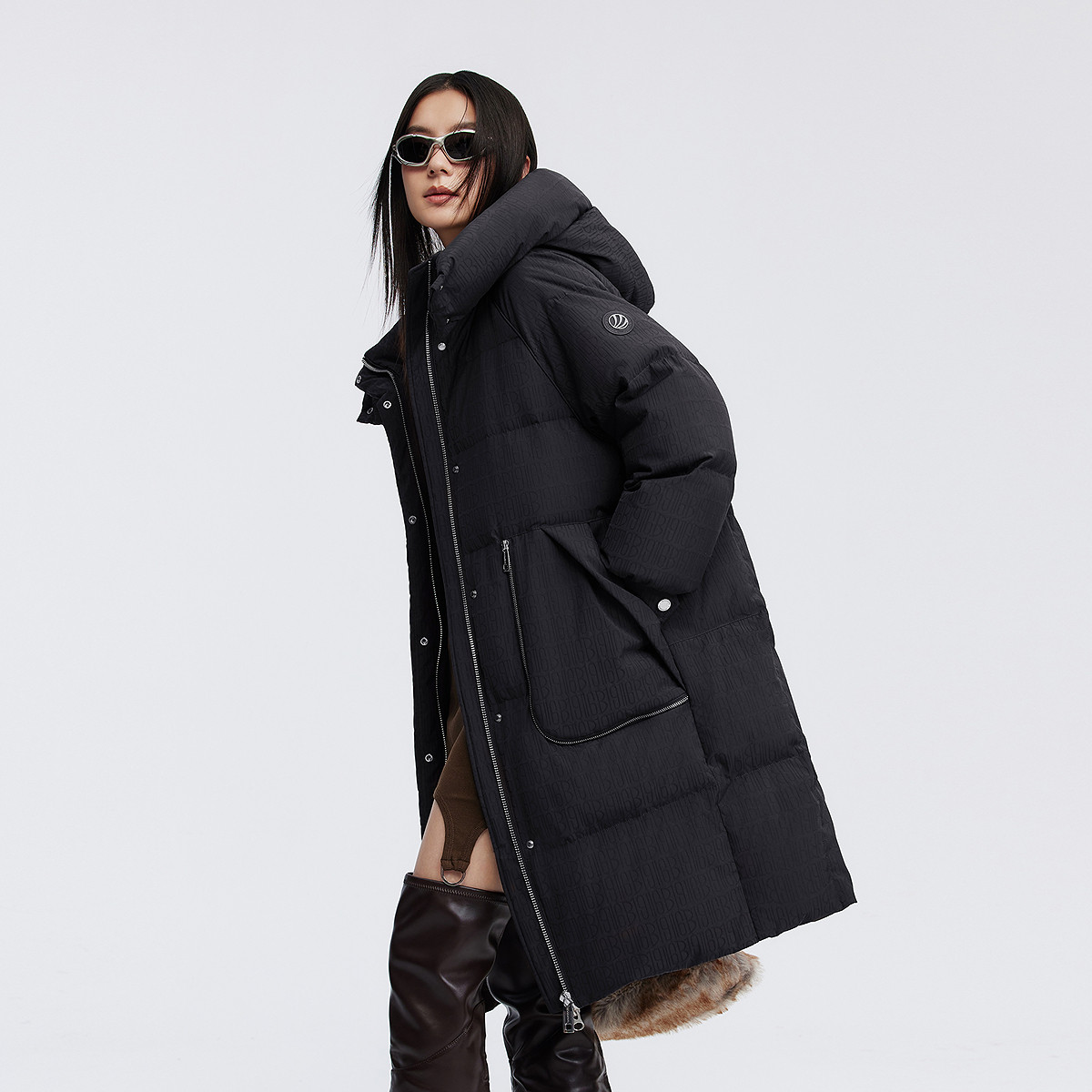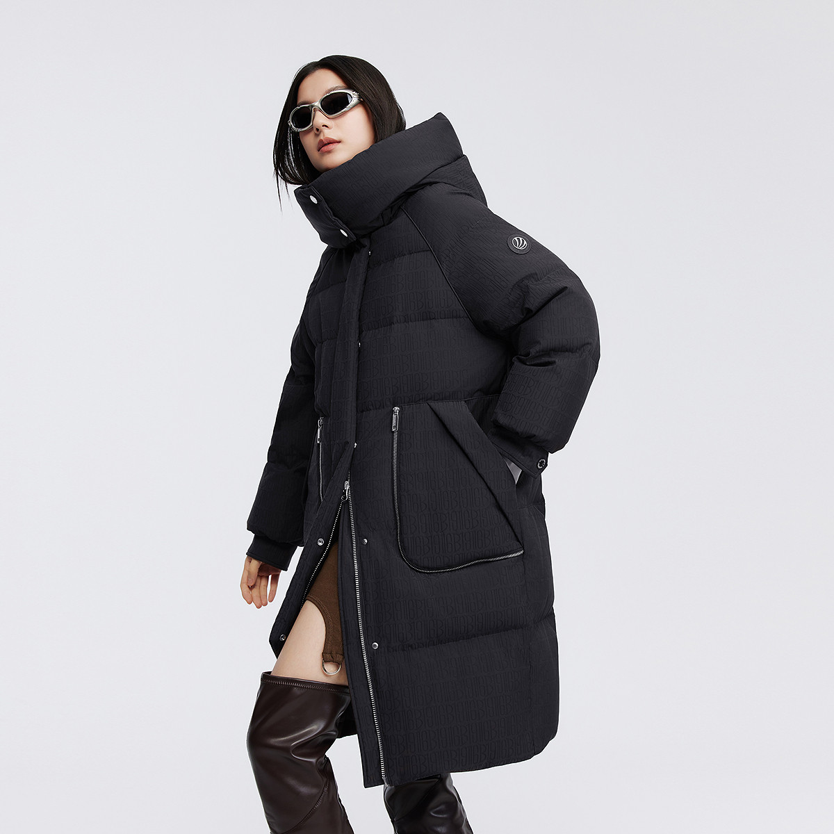 波司登25新款羽绒服女时尚休闲科技黑金长款连帽保暖百搭