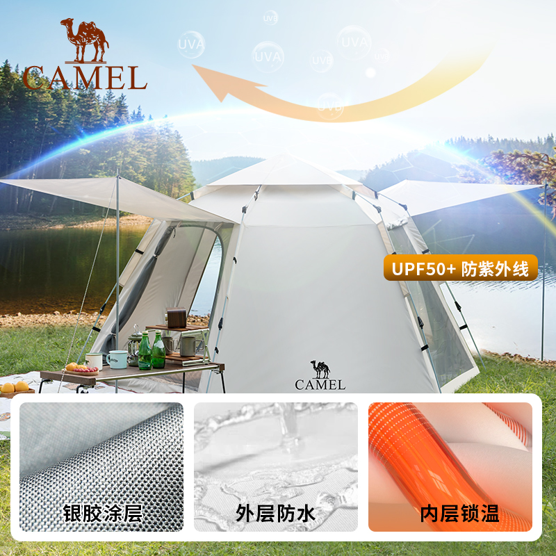 骆驼帐篷户外露营野营过夜便携式折叠全自动全套装备加厚黑胶新款