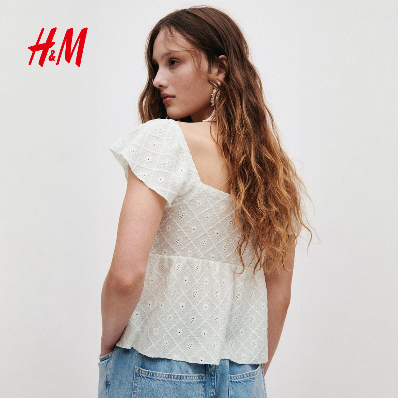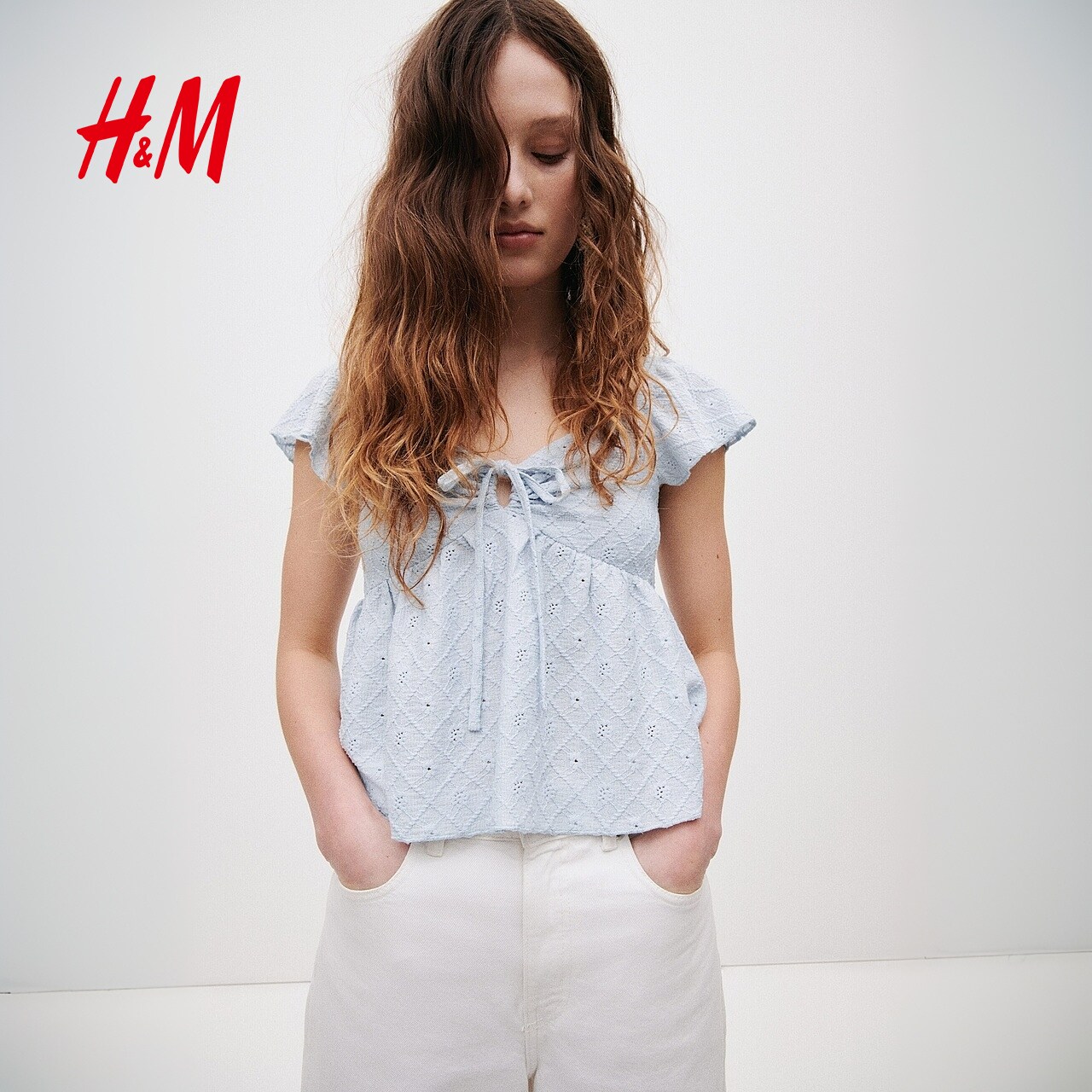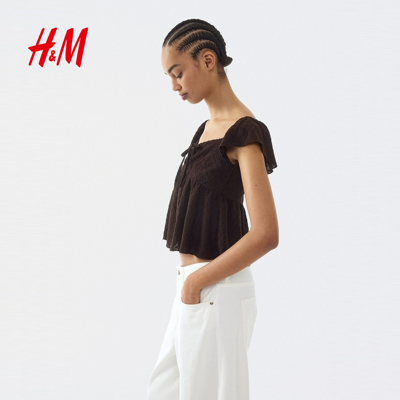 HM女装T恤2026夏季新款花苞t恤荷叶袖甜美网眼汗布上衣1314583