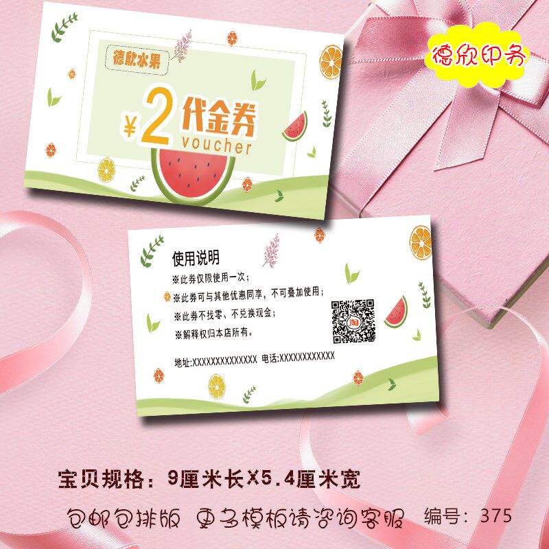 水果店代金d券订做生鲜果蔬超市提货优惠卷现金券定制设计制作印