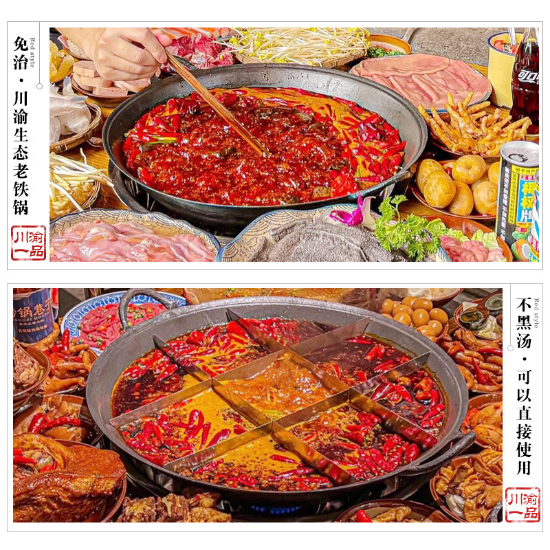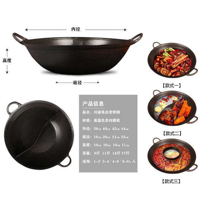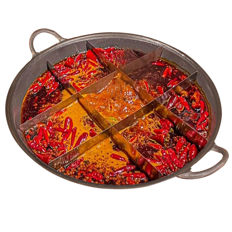 火锅锅商用平圆底双耳鸳鸯锅盆九宫格重庆卡磁炉地摊专用生铁锅具