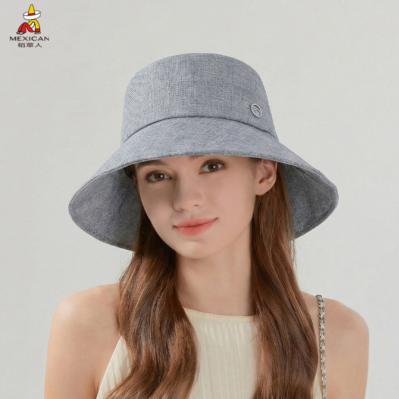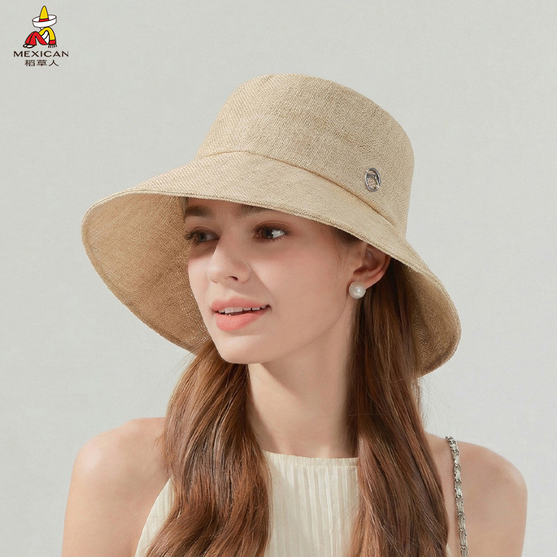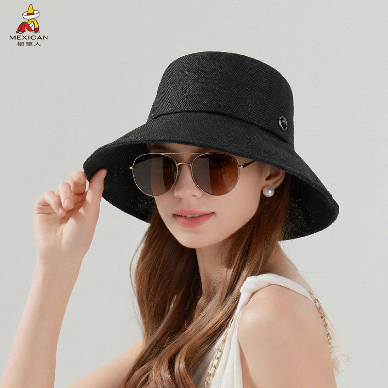 稻草人新款女士宽檐渔夫帽夏季遮阳防晒可折叠显脸小户外太阳帽子