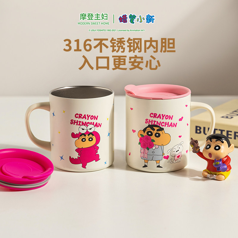 摩登主妇蜡笔小新保温马克杯不锈钢杯办公室儿童水杯家用咖啡杯子