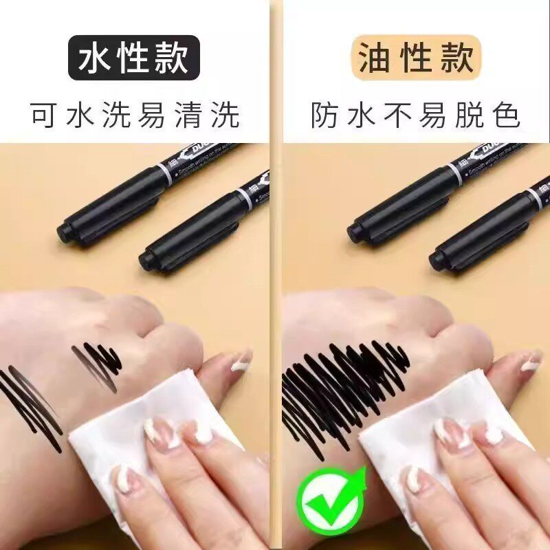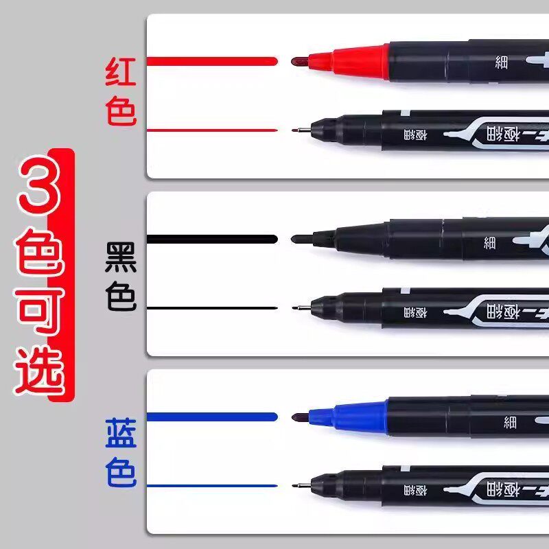 双头记号笔防水防油不掉色黑色油性墨水两头勾线笔美术专用小学生