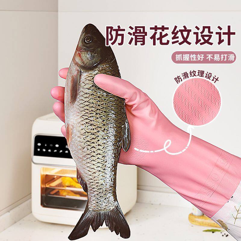 洗碗手套女家用厨房耐用型贴手防水胶皮手套刷碗做家务清洁洗衣服