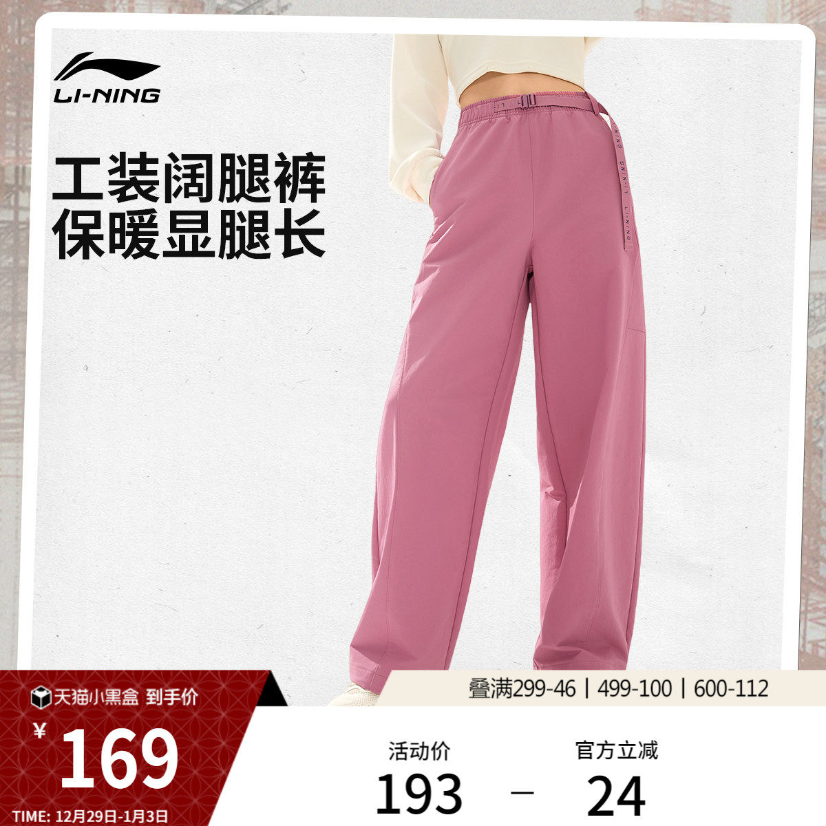 李宁C位裤丨工装阔腿裤女士新款冬季休闲保暖直筒梭织运动裤