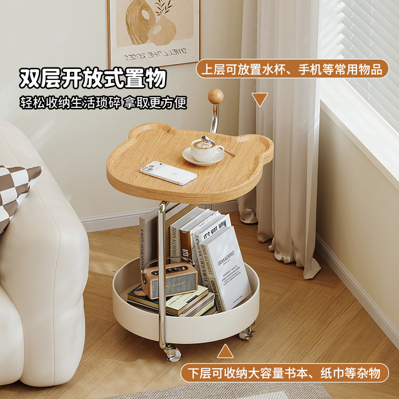 奶油风移动边几沙发边柜可移动茶几客厅零食小推车置物架床头桌子