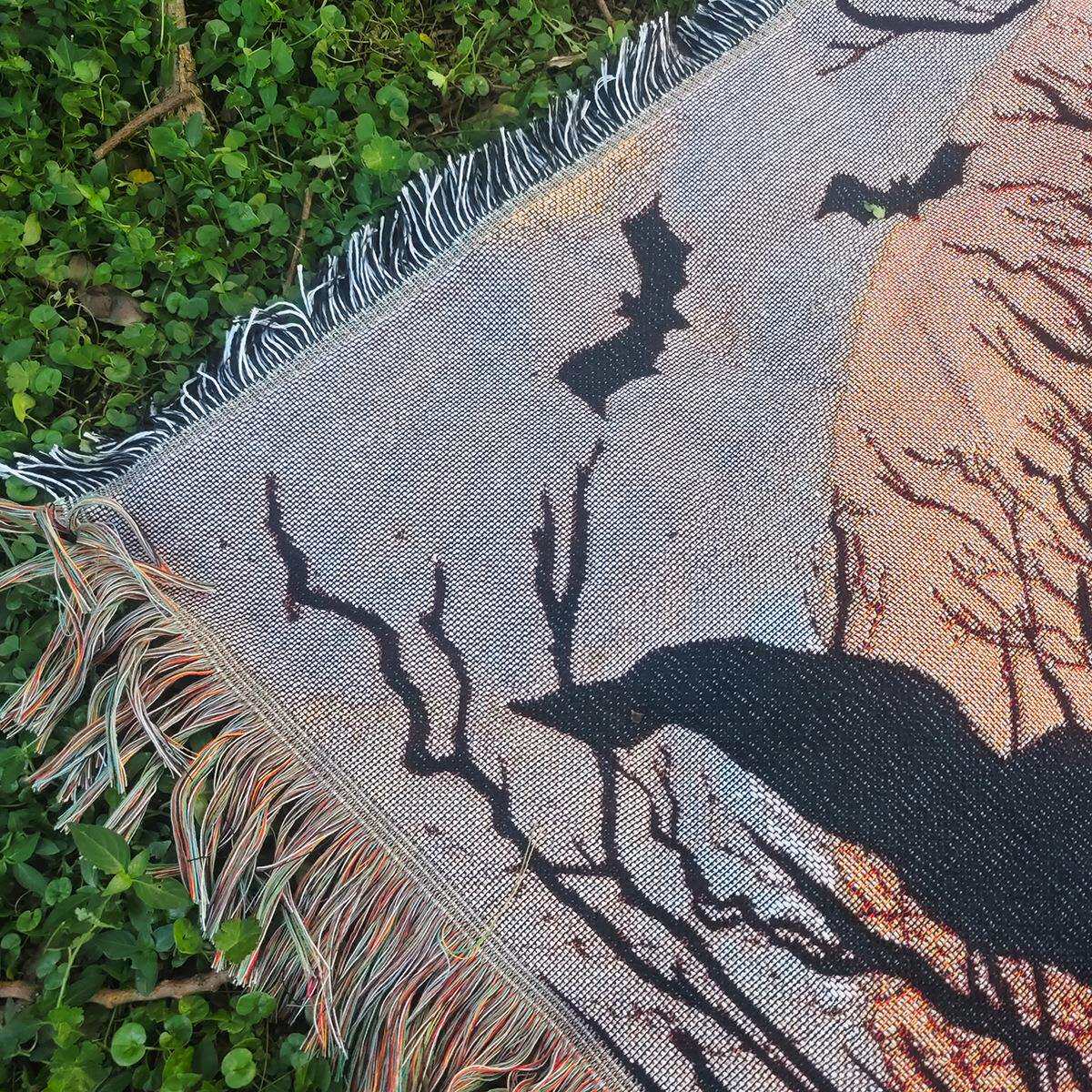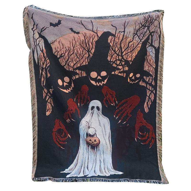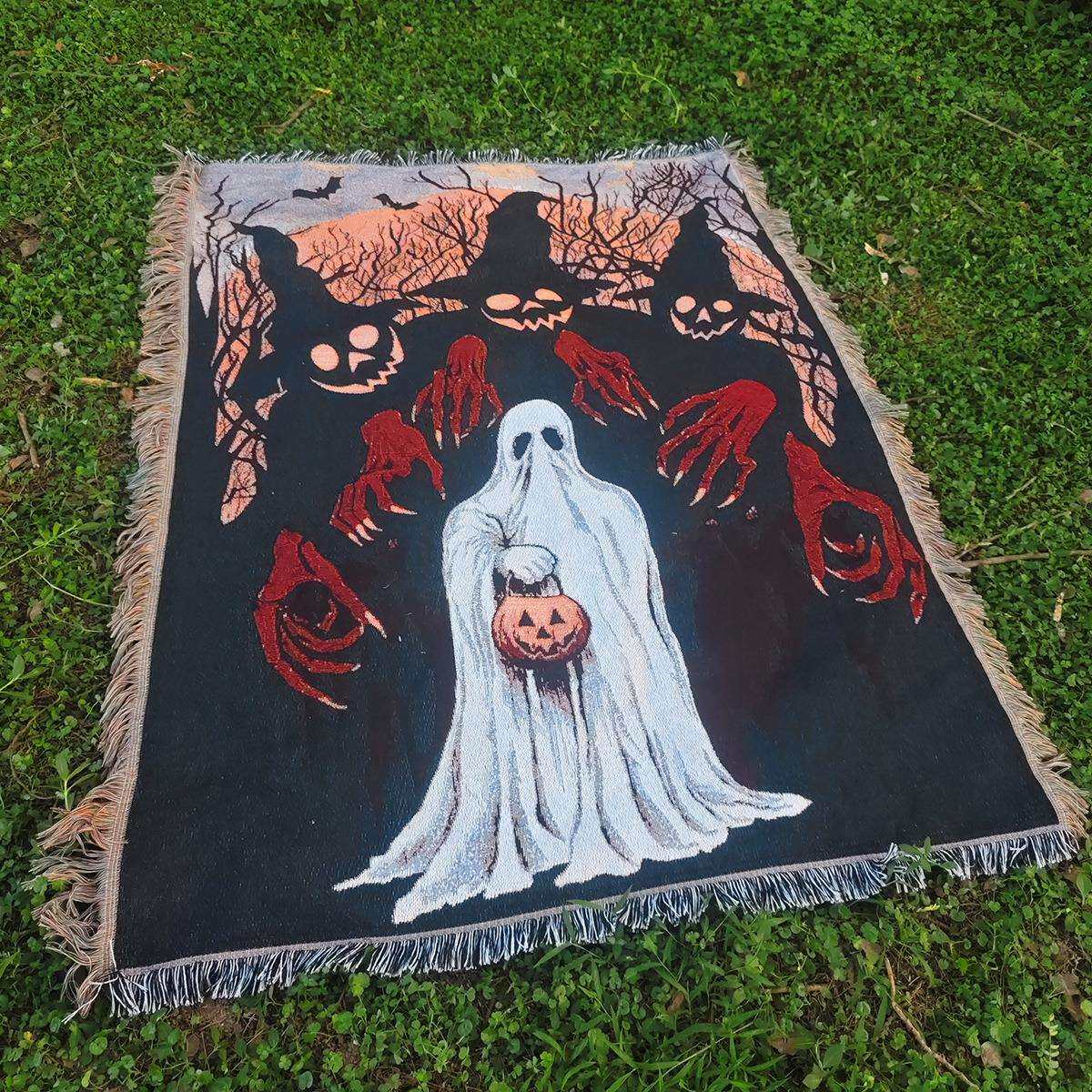 万圣节主题幽灵节日装饰挂毯沙发巾线毯户外露营地毯氛围感背景布