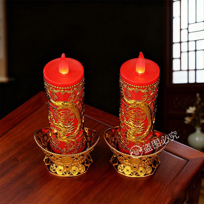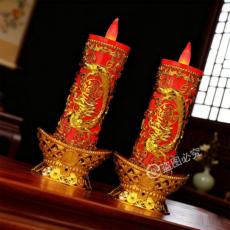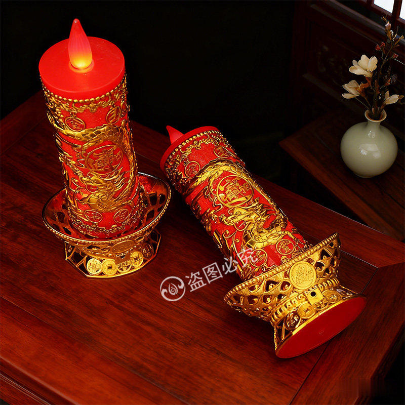 LED仿真电子蜡烛灯供佛入伙结婚春节过年财神长明灯龙凤新款烛台