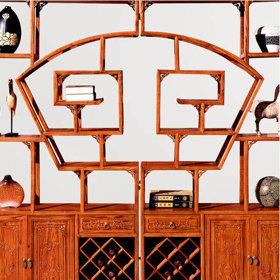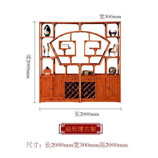 办公家具扇形格木博古架中式茶室家具古董架古典书房书架书柜