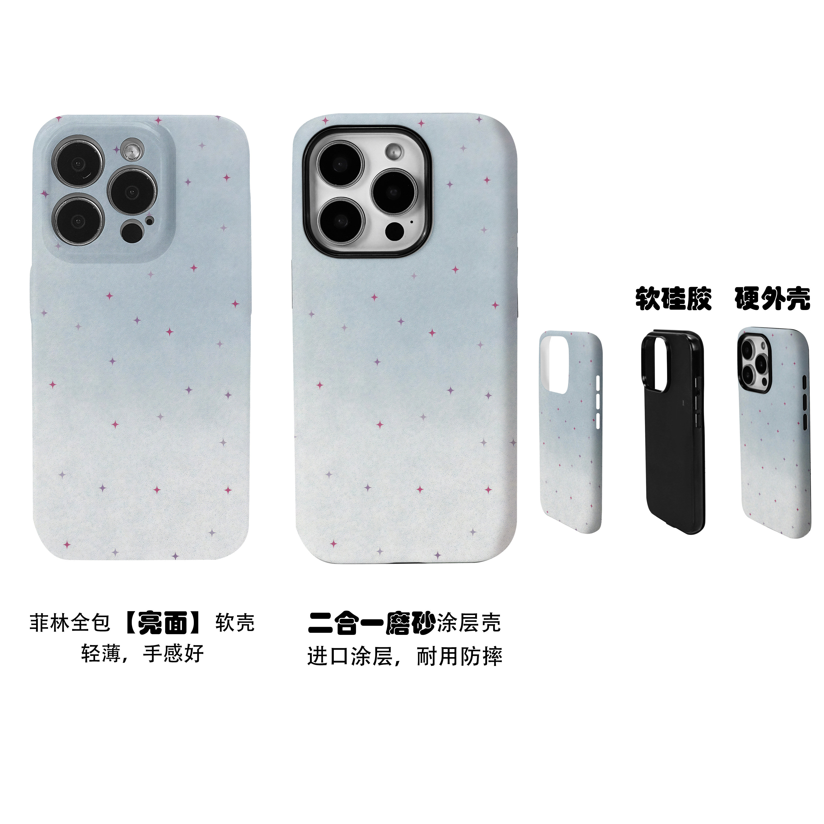 蓝色渐变复古星星可爱菲林二合一手机壳适用苹果17nova14华为p70mate60小米15opporen14ovivo荣耀300iPhone16