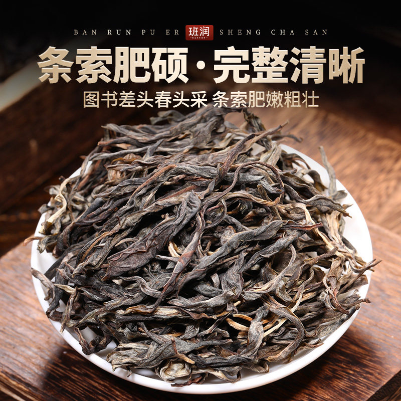2022年贡茶普洱茶生茶散茶班润曼松春茶古树茶生普散装茶叶大叶