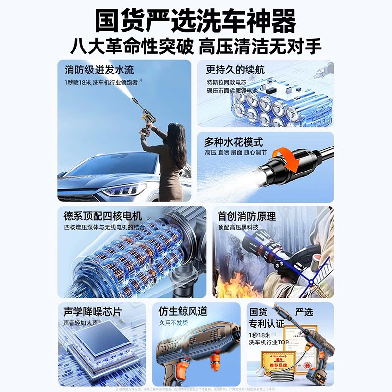 德国高压洗车水枪无线大功率家用锂电池清洗机神器喷水枪手持便携