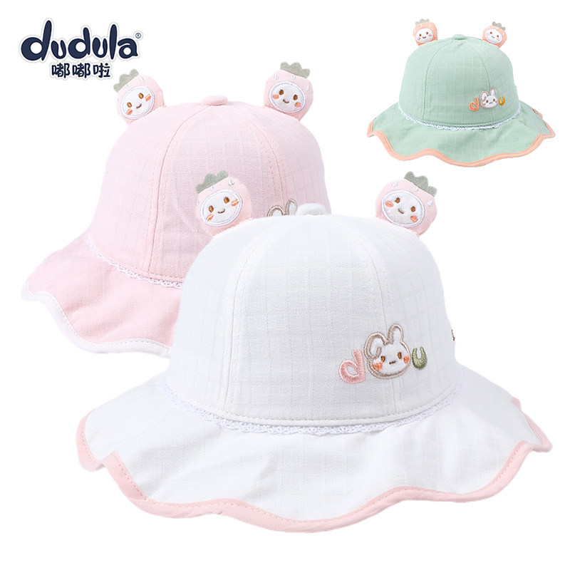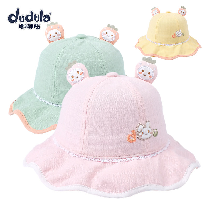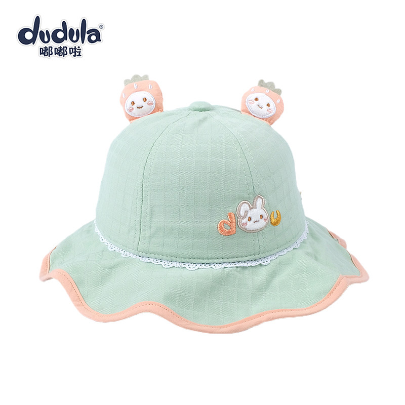 嘟嘟啦公主盆帽春秋薄款渔夫帽婴幼儿童帽子防晒女宝宝遮阳大檐帽