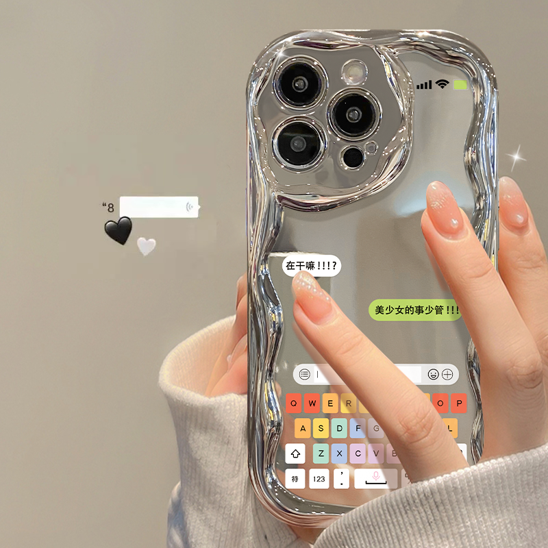 适用于苹果15手机壳16新女款iPhone14promax/13奶油纹小众11/12pro全包防摔xs/xr高级感7/8电镀银se2保护套6s