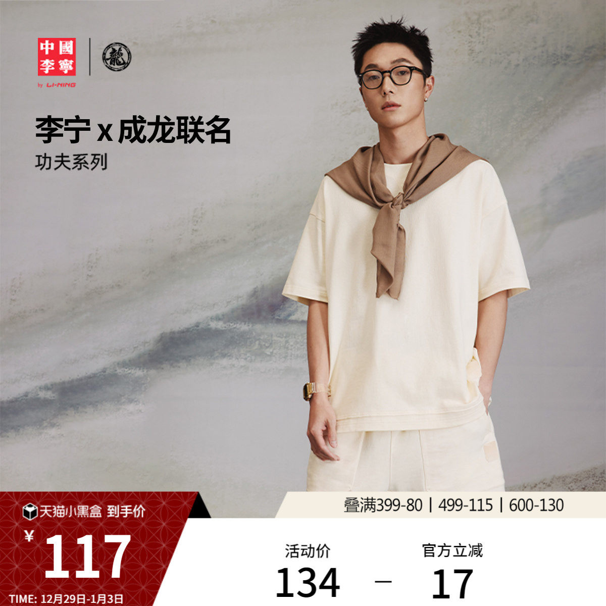 李宁 x 成龙联名功夫系列T恤男士官方新款夏季上衣休闲运动短袖男