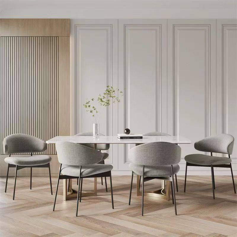 棉麻意式餐椅家用靠背设计餐厅北欧轻奢现代简约高档软包中古时光