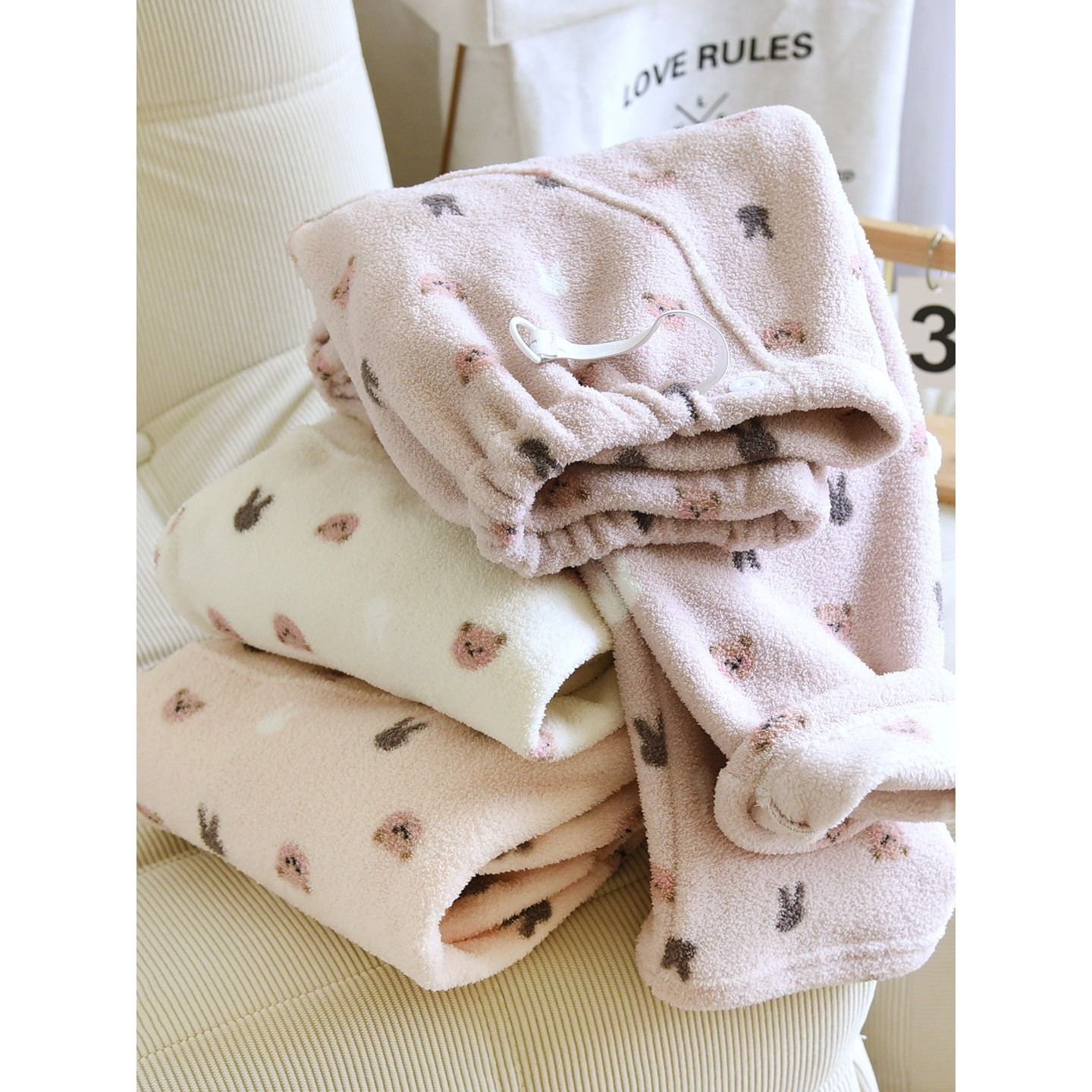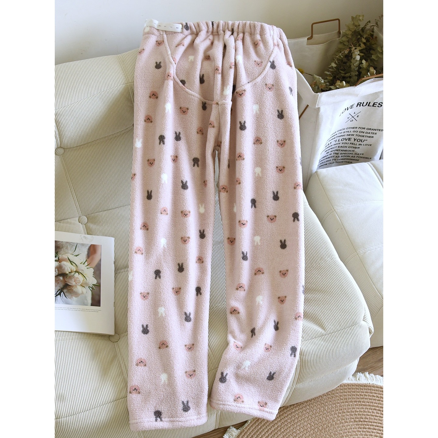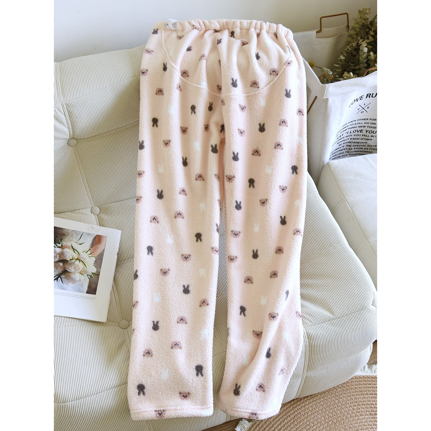 红豆冬季孕妇睡裤不勒肚子珊瑚绒加绒加厚怀孕期月子长裤可调节托
