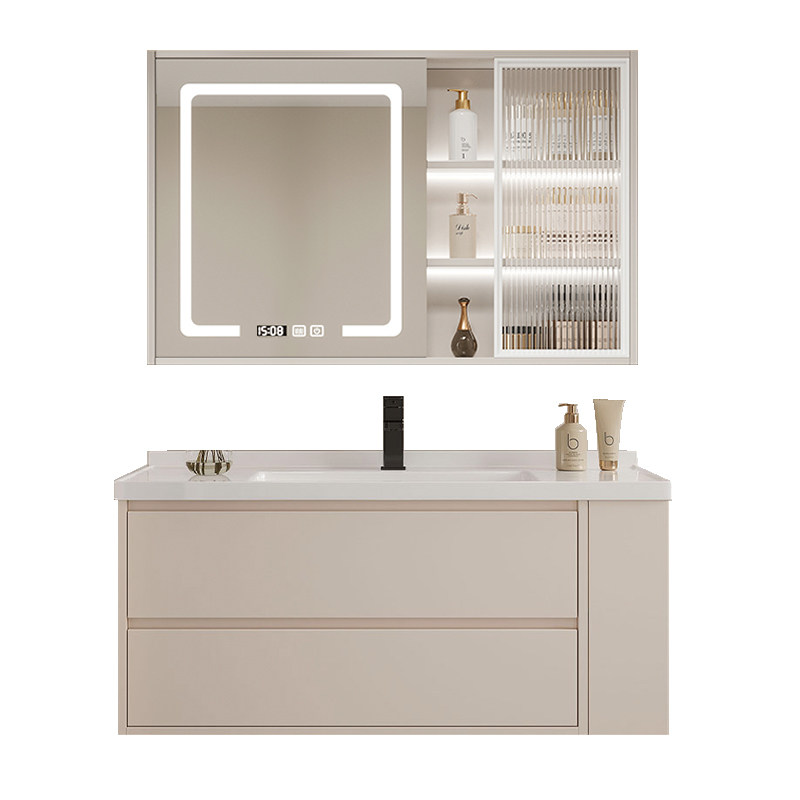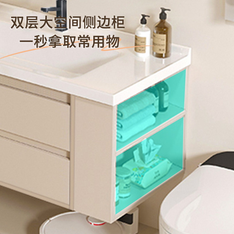 新奶油风实木浴室柜陶瓷一体盆卫生间洗手洗脸盆柜组合马桶台面