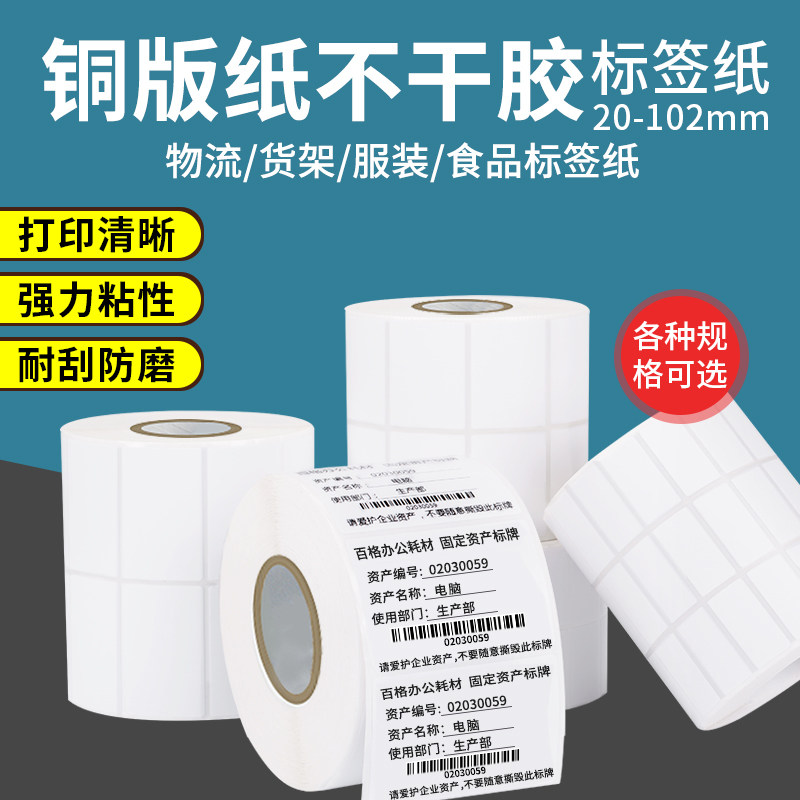 铜版纸不干胶标签70 80 90 100 102铜板标签条码纸打印纸服装吊牌食品医药物流纸箱定做彩贴纸FBA亚马逊商品