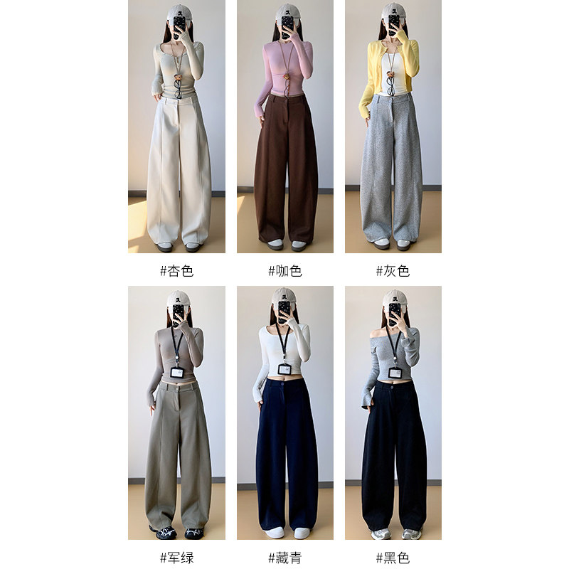 唐狮DESSO秋冬新款糯米裤高腰垂感宽松加绒直筒阔腿裤5