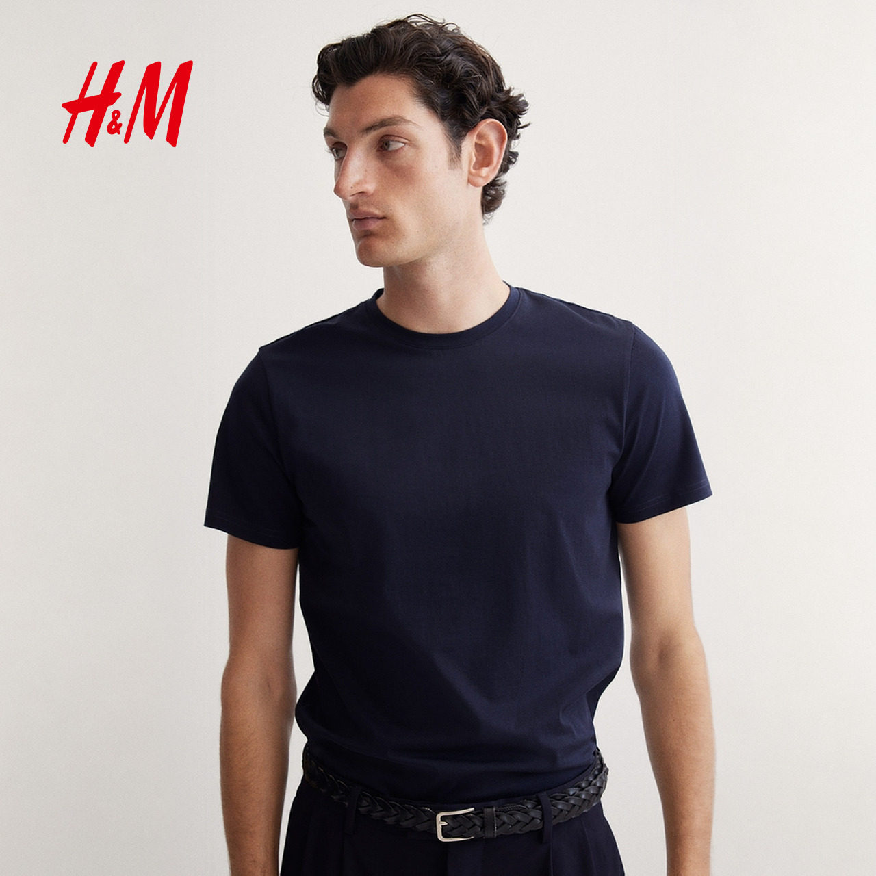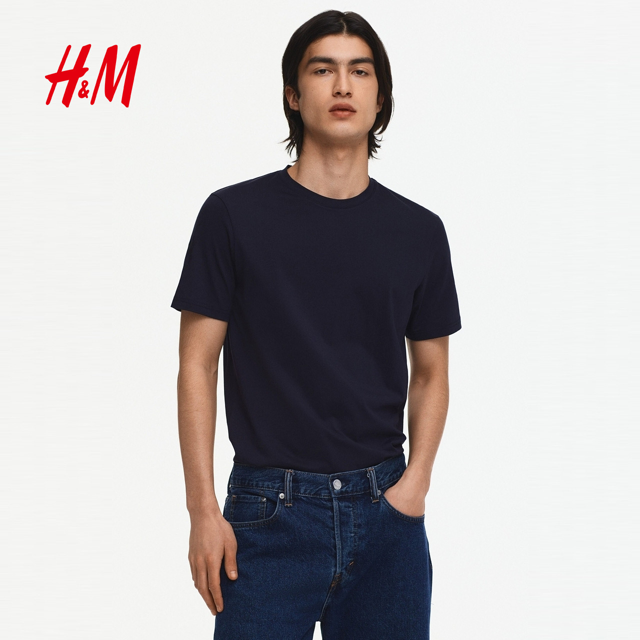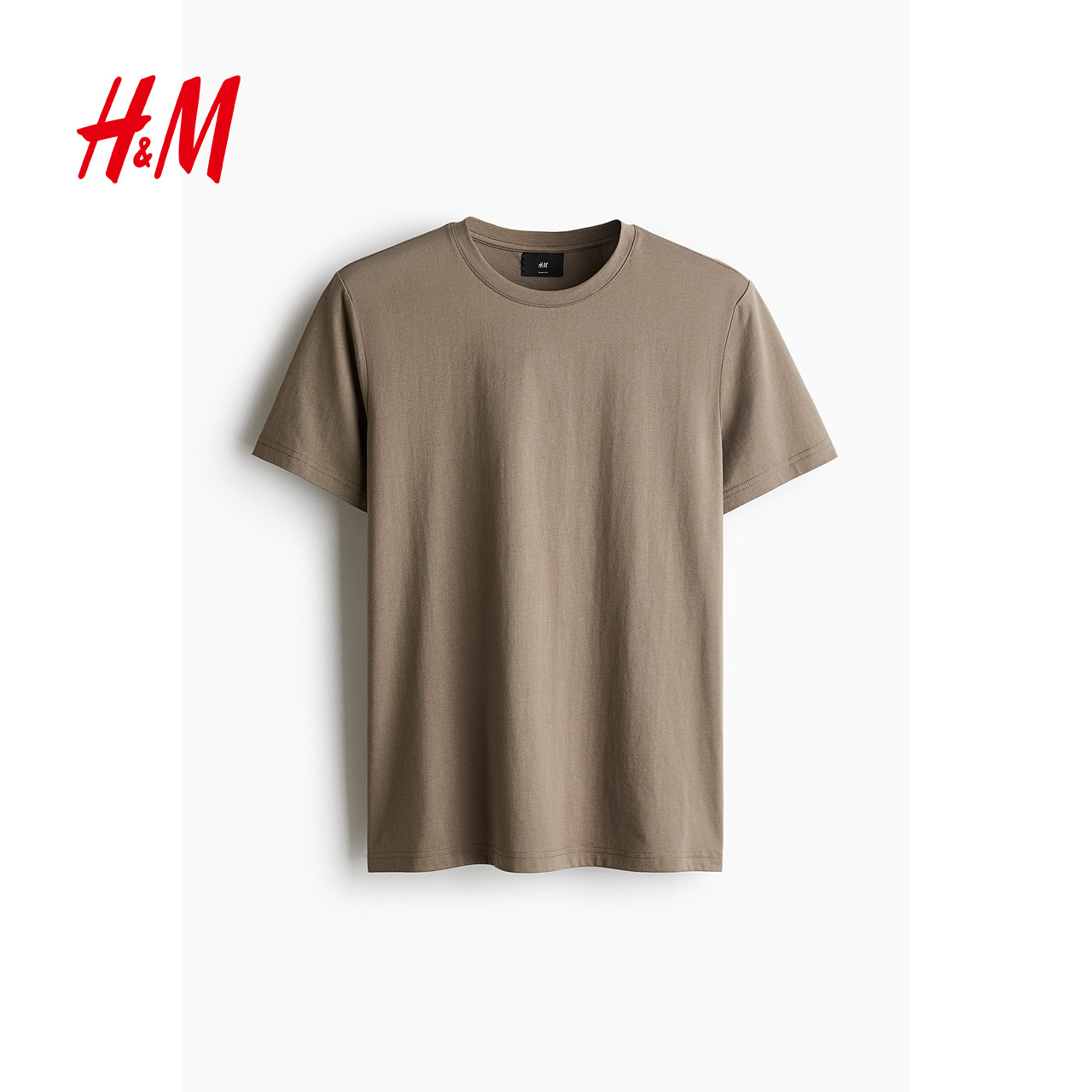 HM男装女装T恤春季透气圆领户外出游运动短袖内搭简约上衣0685816