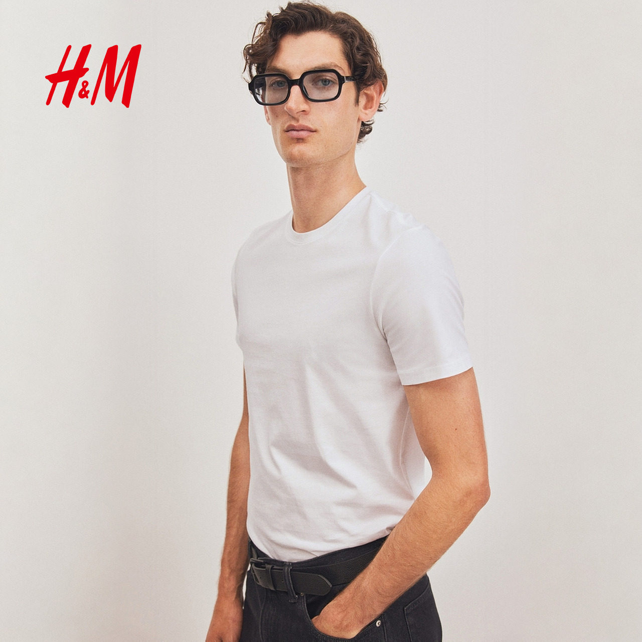 HM男装女装T恤春季正肩匹马棉细密罗纹圆领短打底衫1101074
