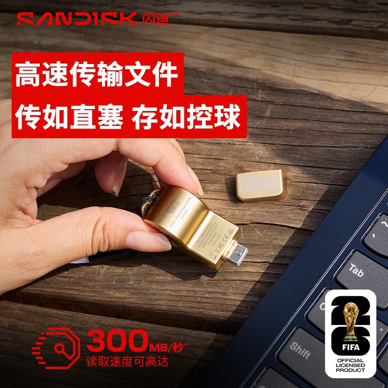 闪迪FIFA World Cup官方授权128G哨子TypeC全金属电脑手机u盘
