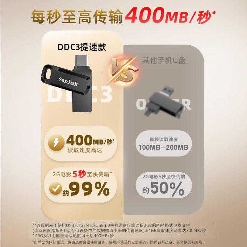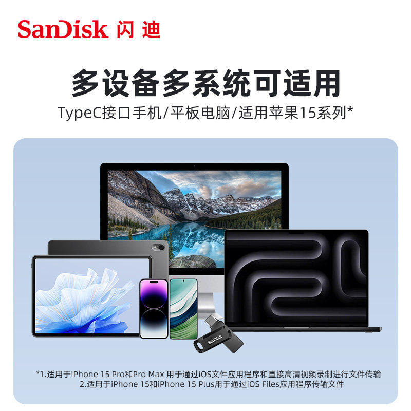 闪迪TypeC双接口适用华为苹果手机u盘电脑两用大容量内存扩容优盘