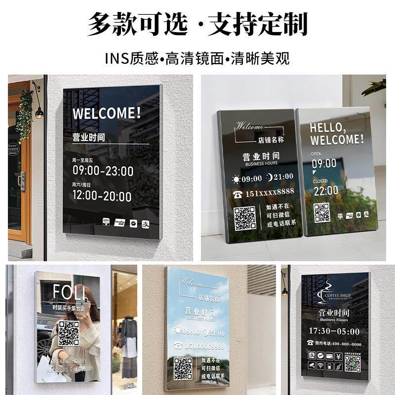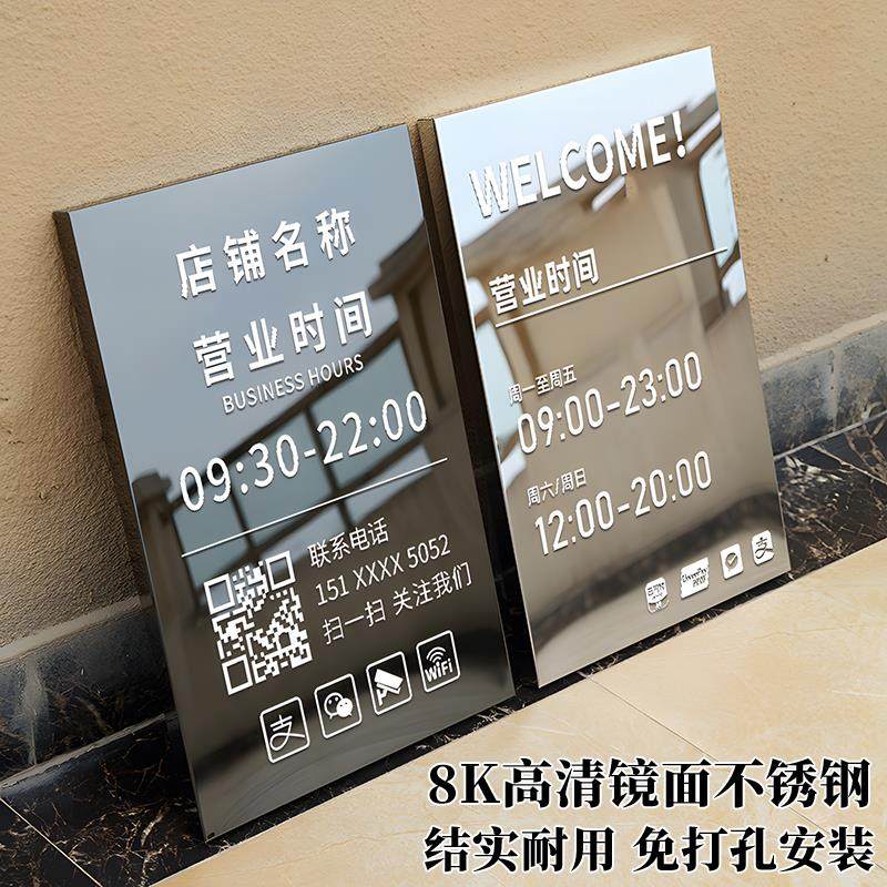 镜面不锈钢工作室门牌营业时间告示牌轻奢高级感公司门牌服装咖啡美甲美容店工作营业时间提示牌招牌广告牌