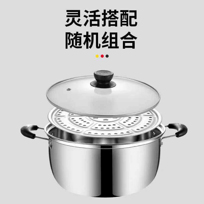康巴赫款加厚不锈钢汤锅家用蒸锅煲汤锅奶锅小火锅煤气炉燃气带盖