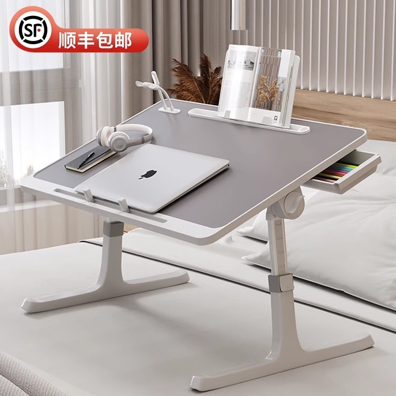 可升降折叠床上小桌子简约宿舍学生写字床上书桌学习调节高度支架家用卧室坐地飘窗懒人笔记本电脑办公小桌板