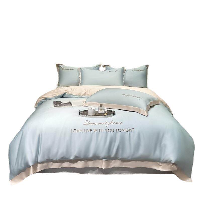 轻奢夏凉刺绣冰丝床单四件套夏季裸睡水洗真丝被套床笠床上用品