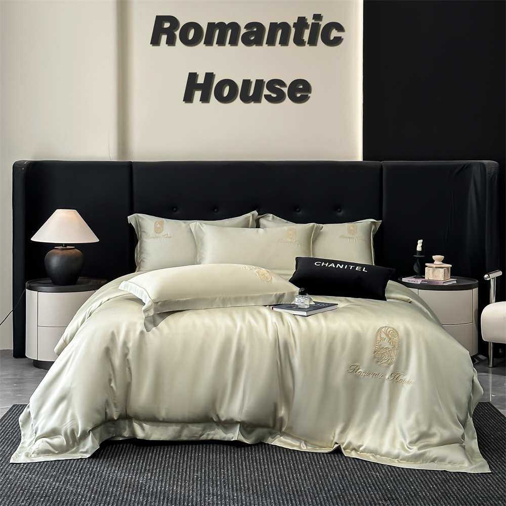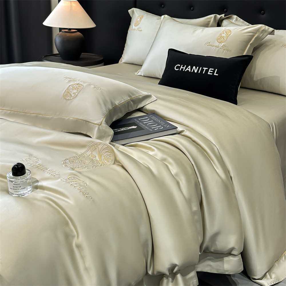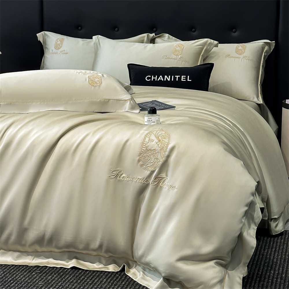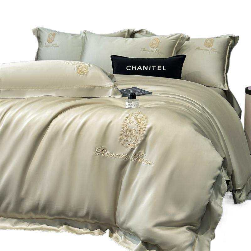 夏季冰丝刺绣轻奢水洗真丝四件套丝滑床单被套高级裸睡床上三件套