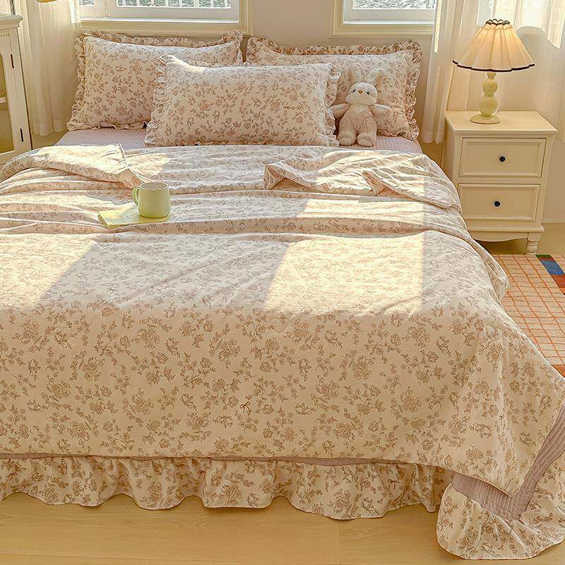 夏季双层纱花边床盖夏凉被子四件套2025新款单人宿舍床单罩可机洗
