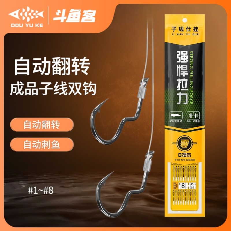 新型自动翻转鱼钩子线双钩成品野钓反转不脱钩短子线鱼钩正品绑好