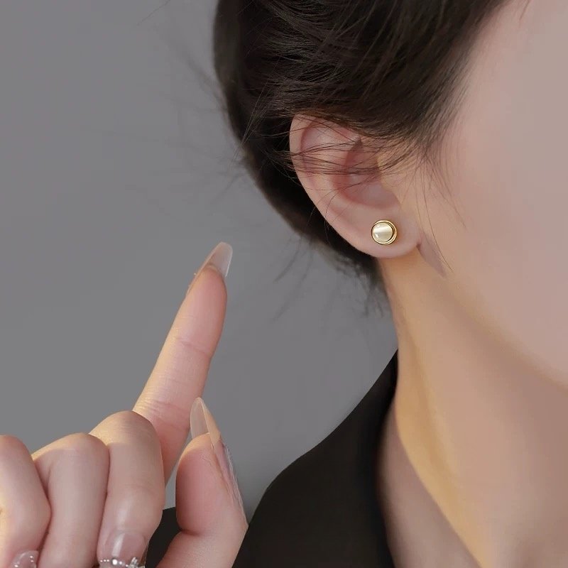 彩色猫眼石银针耳钉套装女夏日圆脸养耳洞耳环小巧精致高级感耳饰