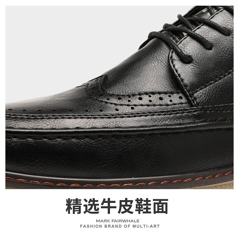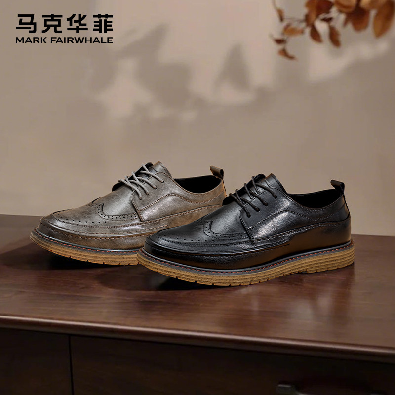 马克华菲男士休闲皮鞋男款鞋子秋季真皮透气英伦复古商务正装男鞋